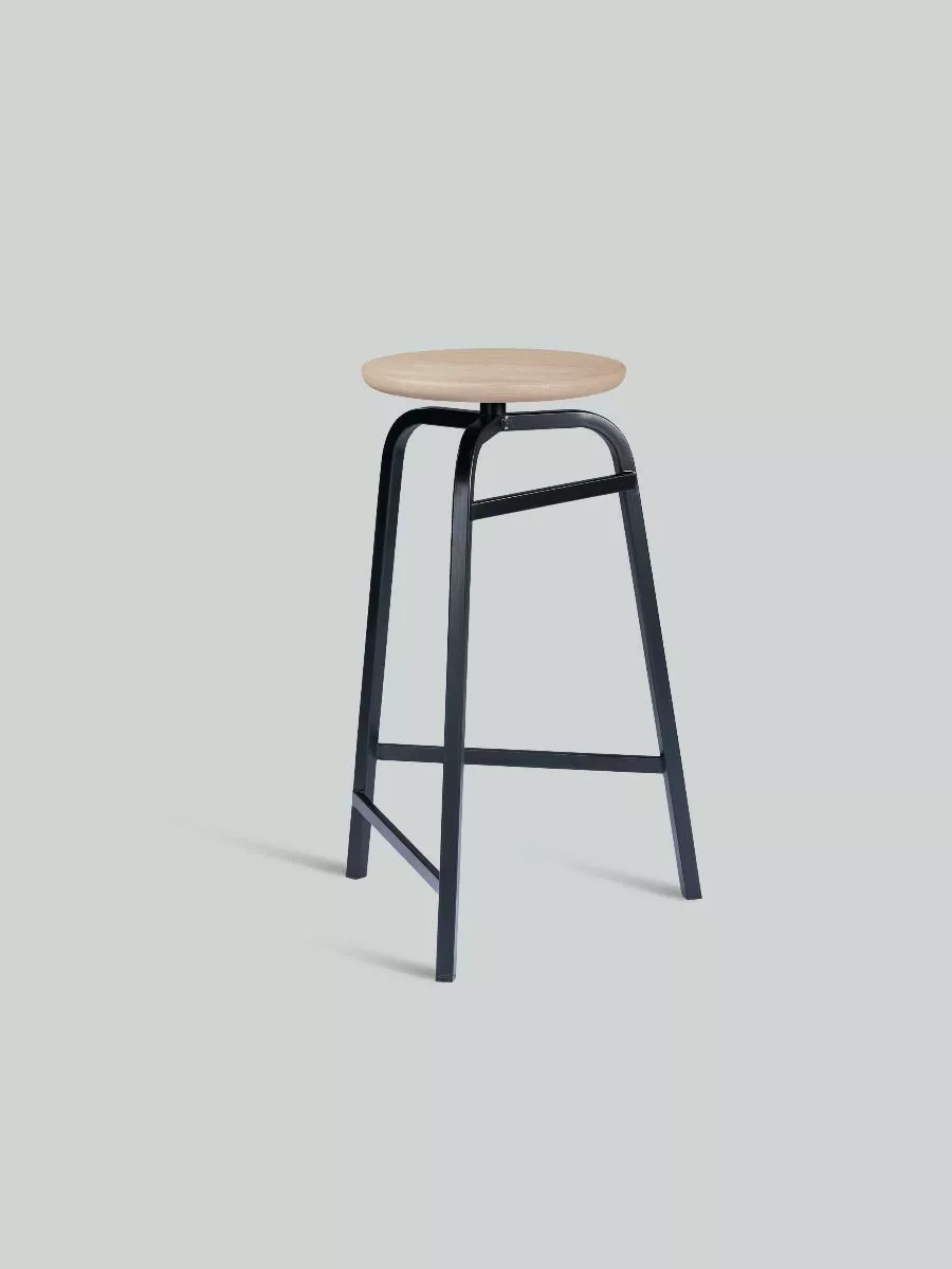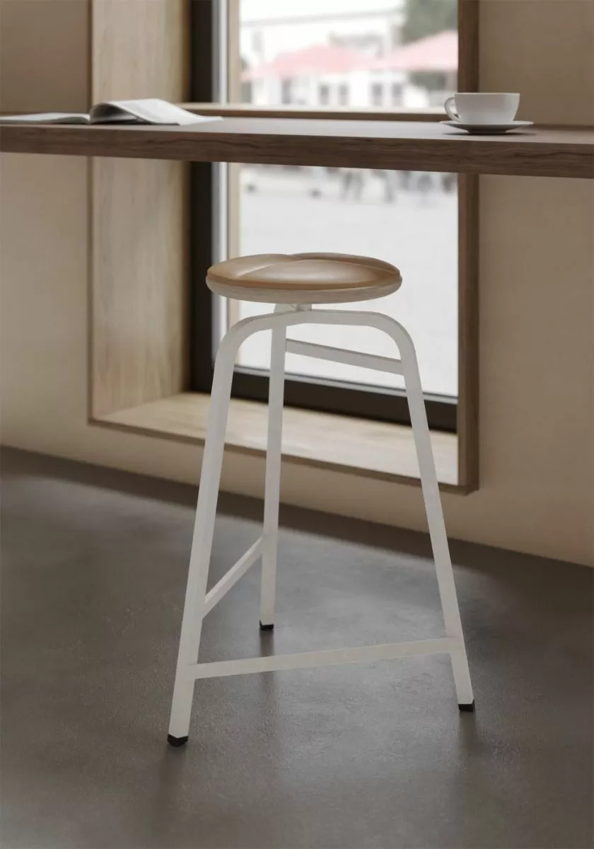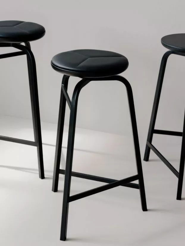 Treble barstol gir den perfekte balansen mellom kontrast og komfort, med sin imponerende trekantede ramme, elegante firkantede rørben og innbydende sirkulære sete.