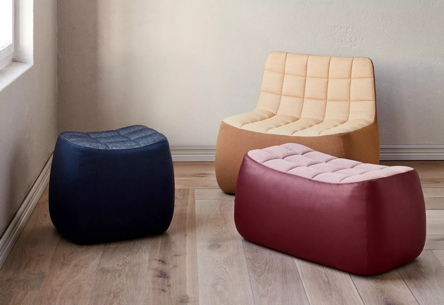 Yam finns också i en medelstor puff och en större stolversion där ryggstödet bildas av en subtil vikning som delar ryggen från sätet. Varje design finns i ett urval av tyger. Sätena är tillräckligt subtila för att smälta in i det mesta av interiören, men ändå slående nog att sticka ut i ett modernt rum.