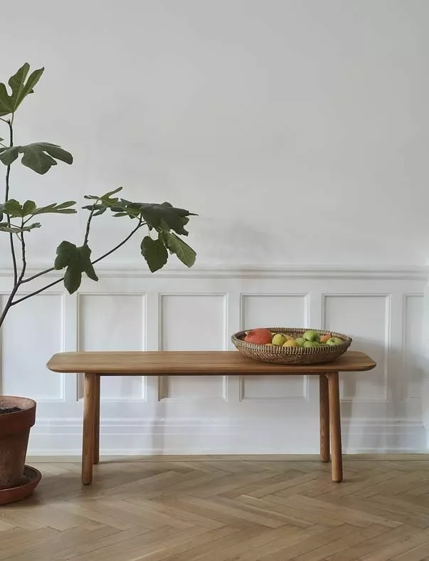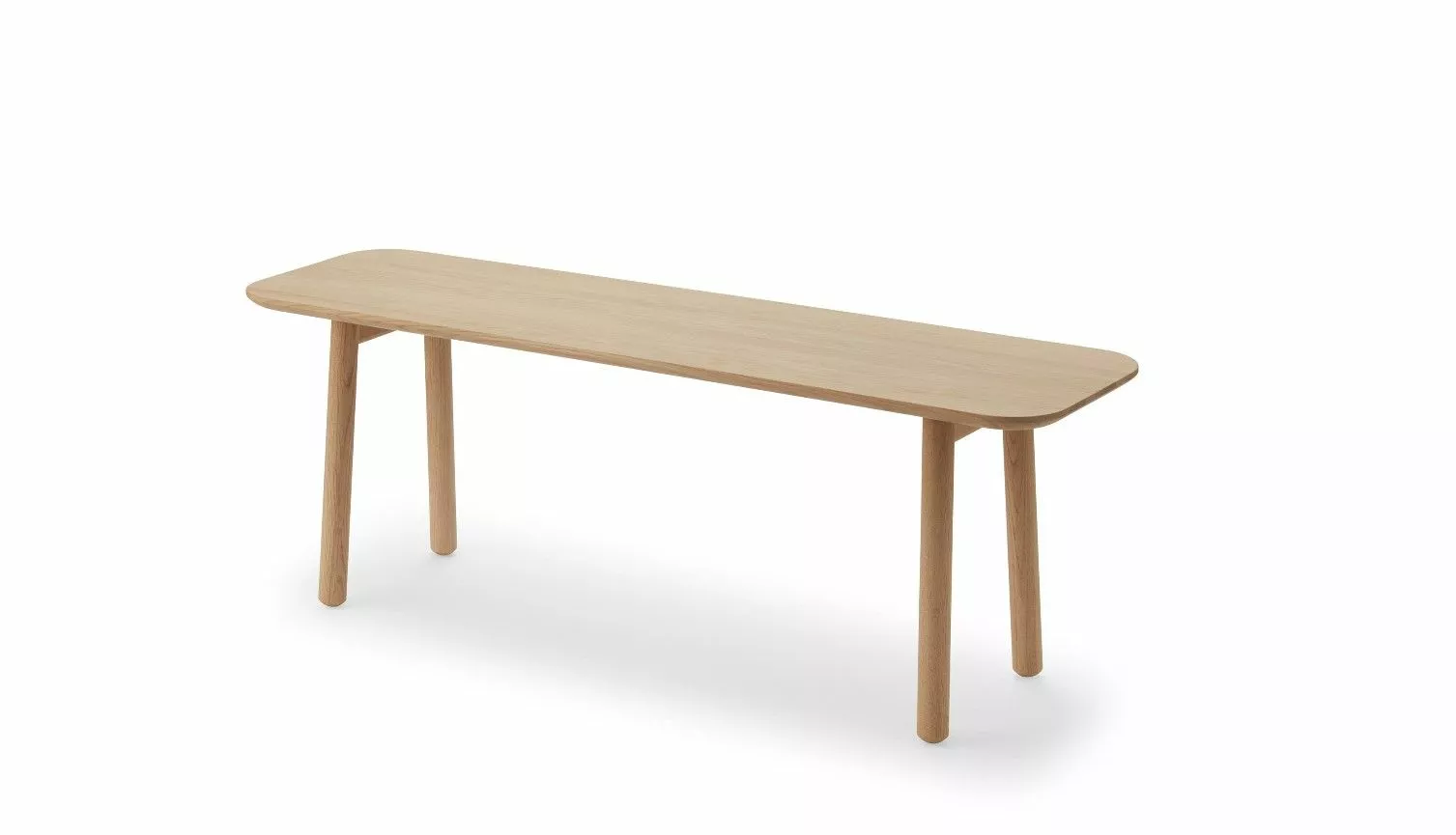 Hven Benk er laget av massiv, ubehandlet eik med et vakkert kornmønster og suveren holdbarhet. En minimalistisk design, preget av sine runde ben og hjørner – enkel å kombinere med andre ting hjemme.