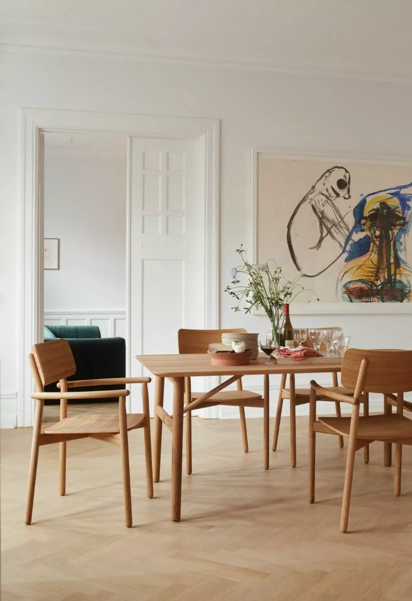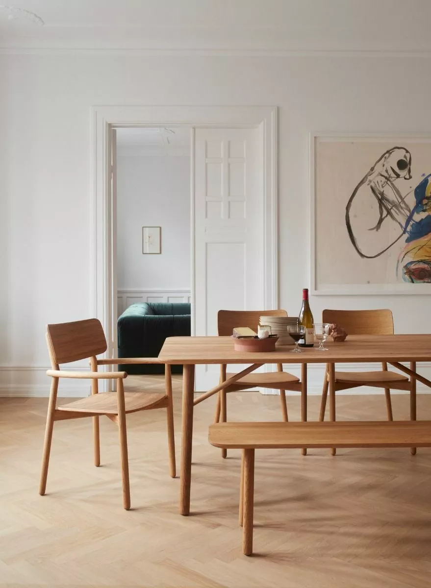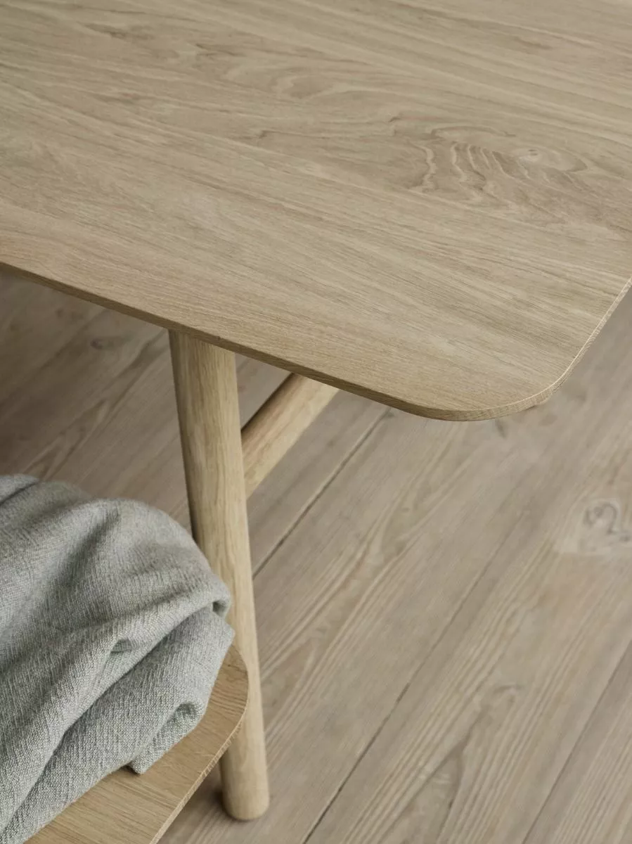 Hven Table er laget av solid, FSC-sertifisert eik med et fantastisk åremønster og bemerkelsesverdig holdbarhet. En myk, minimalistisk design, preget av runde ben og hjørner – lett å kombinere med andre ting i stuen. Bordet passer til fire til seks personer.
