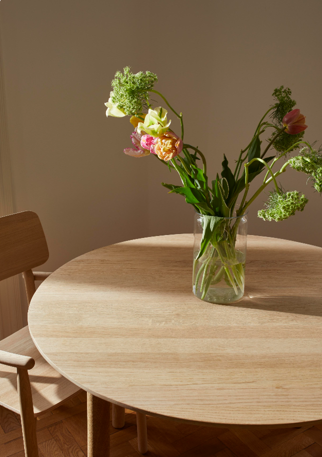 Hven Bord Ø110 är tillverkat av massiv, FSC-certifierad ek med enastående hållbarhet. En mjuk, minimalistisk design som kännetecknas av sina runda ben och fantastiska ådring. Ø110 är en perfekt storlek för ett mindre hem eller kök, då den runda formen visuellt tar mindre plats. Bordet passar fyra personer.