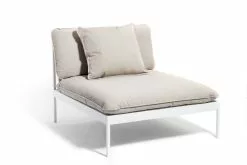 Ett smart modulärt soffsystem som kan användas året runt utomhus. Mycket mångsidig, mycket slitstark. Ramarna är gjorda av aluminium, kuddarna är gjorda av Sunbrella utomhustyger och fyllda med Quickdry-skum.