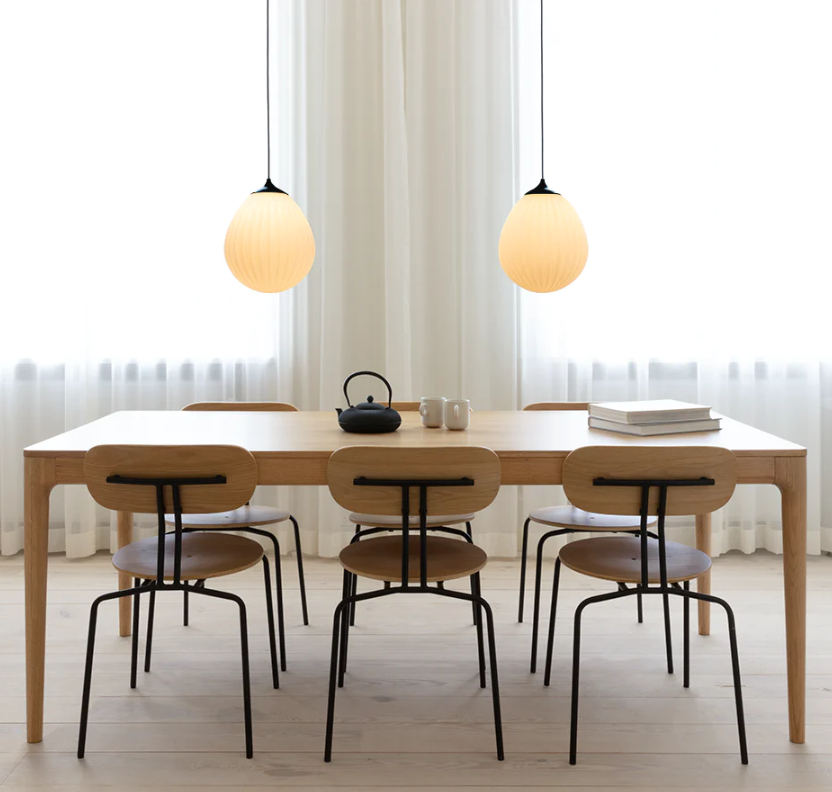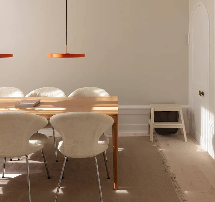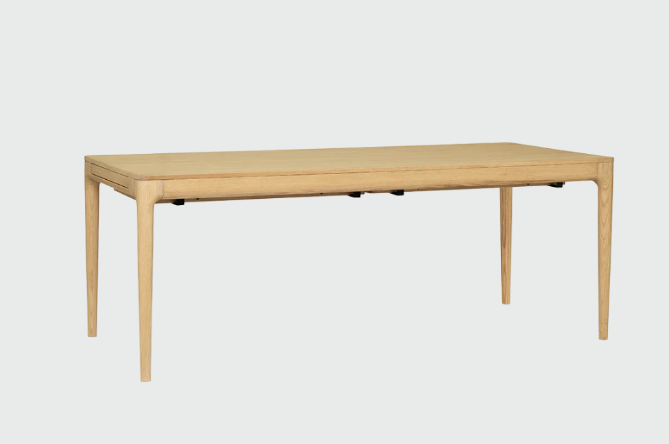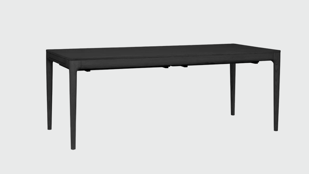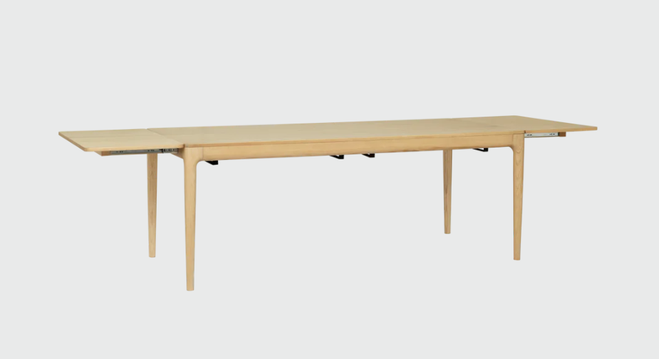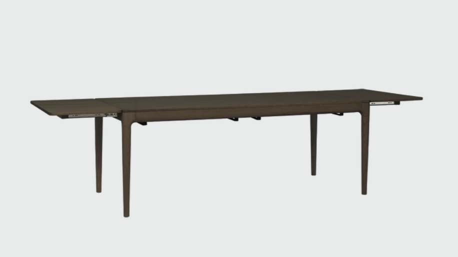 Dette stilrene spisebordet fra Umage er et nydelig eksempel på godt design og funksjonalitet. Spisebordet har en stoffinnlagt skuff på hver kortende, hvor man kan legge små ting og tang som brukes i det daglige. Skuffene brukes også som støtte for de to ekstra bordplatene, noe som gjør bordet veldig stabilt når det er helt slått ut. Ekstraplatene er normalt gjemt under bordet, og er enkle å montere og ta av igjen etter behov.