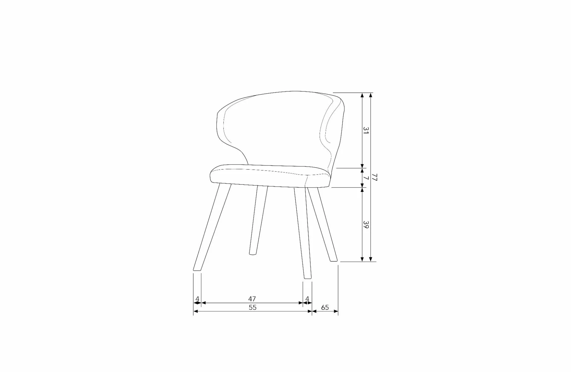 Matstolen Cape har en höjd på 77 cm, en bredd på 55 cm och ett djup på 65 cm. Sitthöjden är 46 cm. Sittbredden på 47 cm och sittdjupet 45 cm i kombination med det något konkava ryggstödet ger en känsla av säkerhet och komfort. Serveringstimmar är därför garanterade! De fyra träbenen har en höjd på 39 cm och en diameter på 3,5 cm. Avståndet mellan de två frambenen är 54 cm mätt på golvet, toppen är 40 cm. Avståndet mellan ett fram- och bakben är 56 cm på golvet och 36 cm i botten. Maximal kapacitet för Cape matstol är 160 kg.