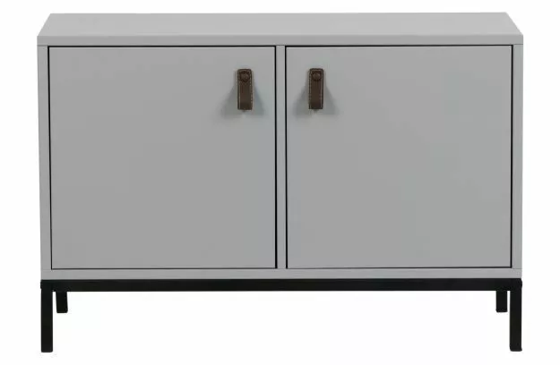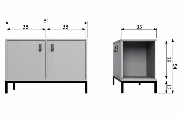 Detta vtwonen lådskåp har två fack (38×38) med dörrar och är gjord av slipat FSC-certifierat furu i en betonggrå färg med läderhandtag och har en svart metallbas. Det fina med detta skåp är att det finns flera element som du själv kan komponera skåpet från. Du kan använda detta småskåp på egen hand med svartmetallbas eller kombinera det med de andra varianterna för att skapa ditt eget skåp!