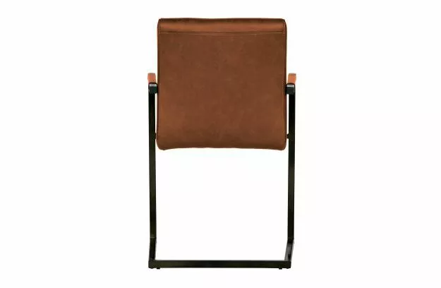 WOOOD Bas är en snygg, modern matsalstol med en sits klädd i ett vintage PU-lädertyg. Sätet har en sydd ribbad struktur. Vintage pu-läder betonar stolens robusta karaktär. Stolens ram är gjord av metall och avslutad med en svart pulverlack.