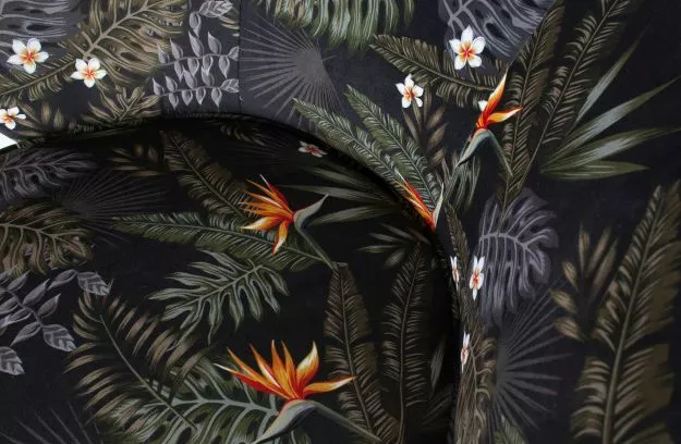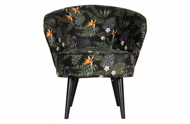 Bo-fåtöljen från WOOOD-kollektionen är en riktig blickfång i varje interiör med sitt vackra och slående tyg. Stolen är klädd i ett 100% polyestertyg med ett attraktivt tryck. Dessutom har stolen en härlig plats.
