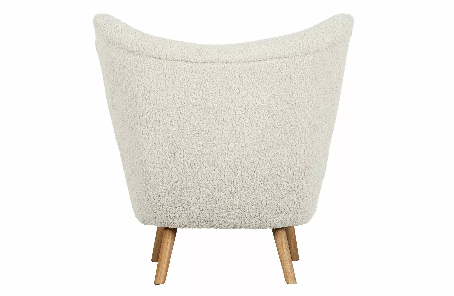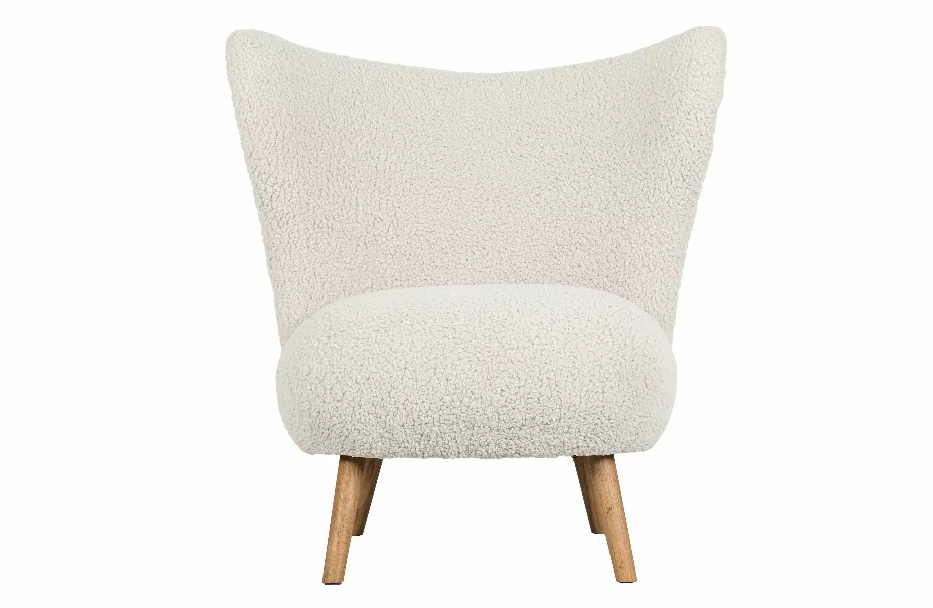 Celine-fåtöljen är en mycket attraktiv stol. Celine kommer från kollektionen av Dutch WOOOD och är gjord av ett supermjukt teddytyg i benvit färg. Fåtöljen är väldigt bekväm. Teddytyget är tillverkat av 100 % polyester och har fyra massiva träben. Benen har en ljus träfärg vilket ger helheten en mjuk look.
