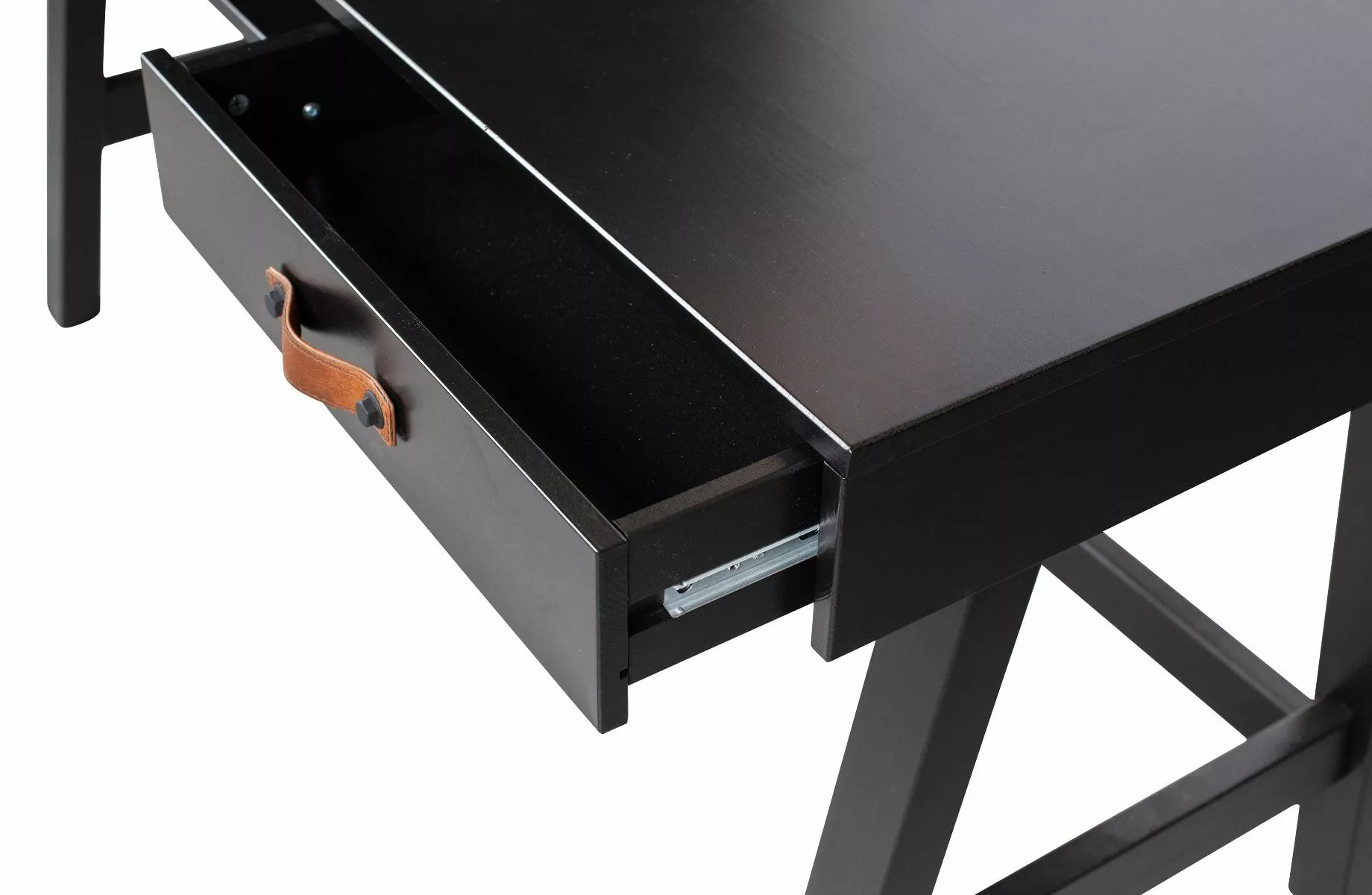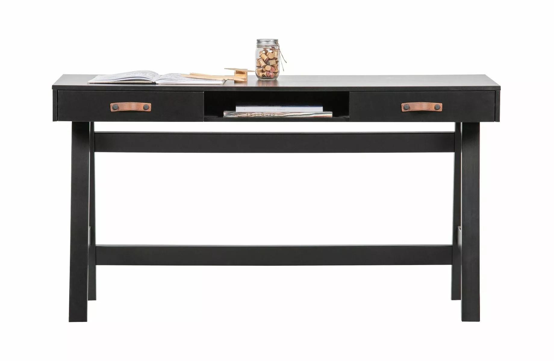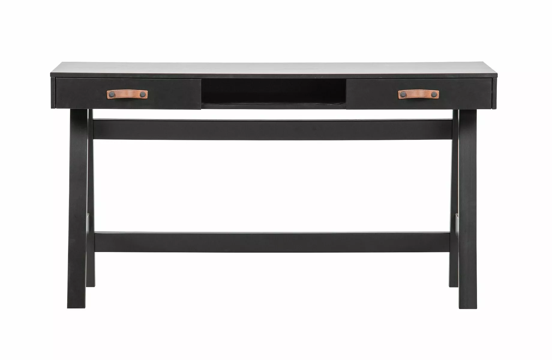 Dian -skrivebordet er moderne, grunnleggende og litt tøft. Dian er et eget design og kommer fra kolleksjonen til merket WOOOD. Skrivebordet er laget av furu og ferdig i en tøff svart farge. Skrivebordet har to skuffer med skinnhåndtak og et oppbevaringsrom. Dette sikrer en ryddig arbeidsflate. Det moderne, robuste utseendet gjør dette skrivebordet egnet for mange soverom!