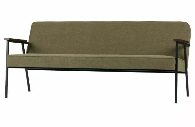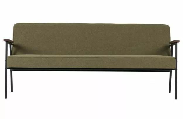 Soffa Elizabeth från WOOOD Exclusive-kollektionen har en cool och tidlös design. Med sina metallben, träarmstöd och starkt olivgrönt tyg gör hon en retronick i alla interiörer. Soffan Elizabeth har en tunn design och ett bekvämt säte.