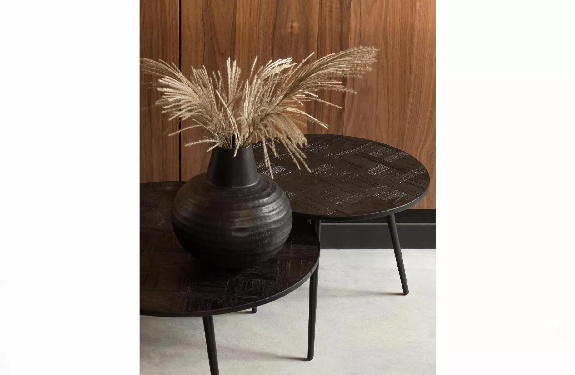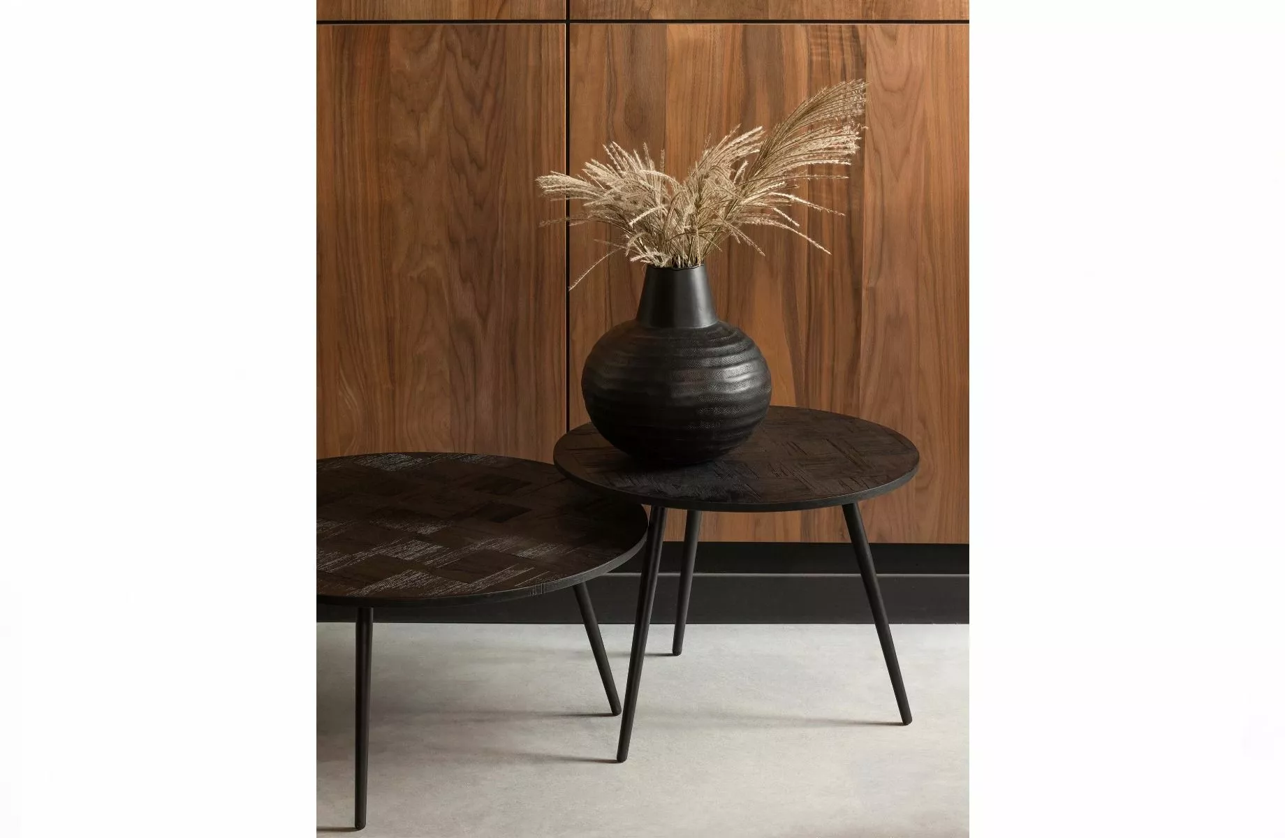 Leo sidebordet kommer fra samlingen til det nederlandske interiørmerket WOOOD og er et slående stykke på grunn av de unike utskjæringene på toppen av toppen. Den grovsagede teaken er 100 % resirkulert, så hver gjenstand har sine egne markeringer og mønster, noe som garanterer deg en unik Leo i hjemmet ditt!