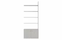 Dubbla din Madu bokhylla i utrymme och storlek. Madu är en stilren, modern bokhylla från samlingen av det holländska märket WOOOD. Madu är gjord av furu med en grå finish. Detta ger hyllan ett tidlöst utseende. De guldfärgade knopparna i kombination med den ljusa furan ger även skåpet en modern och gedigen karaktär. De öppna hyllorna upptill ger plats för att visa tillbehör. Med denna förlängning kan du enkelt dubbla lagringsutrymmet och storleken.