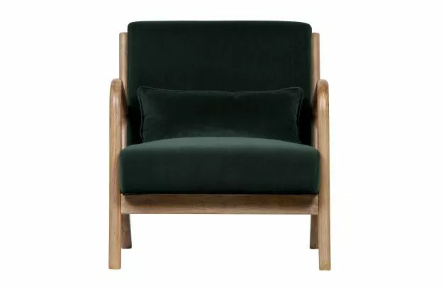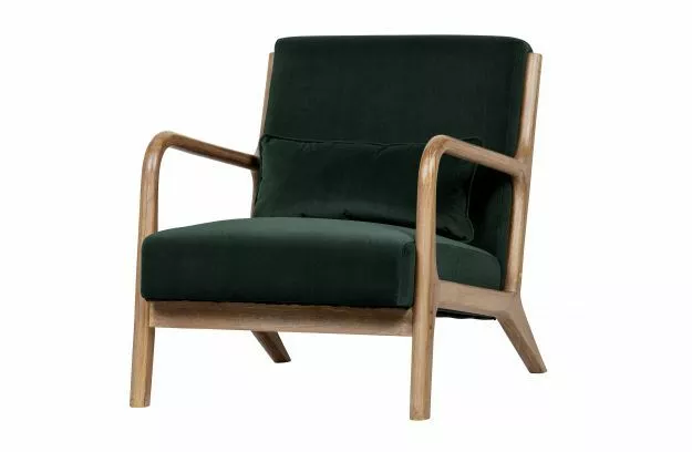 Fåtölj Mark från interiörmärket WOOOD är en vacker tunn fåtölj som kommer att se särskilt bra ut i alla typer av interiör. Armstöd, ben och ram på denna bekväma fåtölj är gjorda av gummiträ. Mark Armchair är klädd med ett lyxigt sammetstyg i färgen flaska grön. Stolen finns också i färgen antracit. Tyget 100% polyester sammet med sammet utseende känns mjukt, är av hög kvalitet och lämpar sig för intensiv användning.