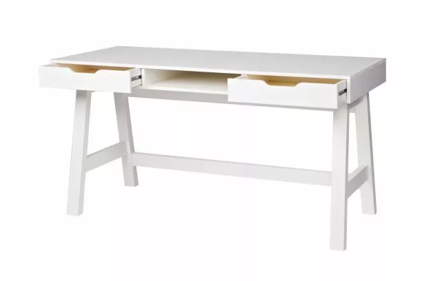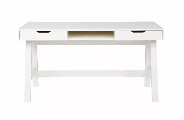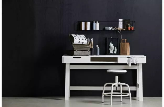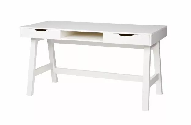 Skrivbord Nikki (hxbxd) 75x140x62 cm är en del av Nikkis sovrumsserie av märket WOOD. Skapa det perfekta sovrummet med denna serie Nikki. Nikki-skrivbordet har två praktiska lådor med en lådstyrning i metall och ett öppet fack i mitten. Skrivbordet är tillverkat av massiv furu, lackerad i färgen vit och har en borstad yta. Vid borstning av furumöbler accentueras venen kraftigt och en åldrad yta skapas. För Nikki-skrivbordet finns också matchande pallar som Lily höjdjusterbar pall, Fem-pall eller Nomi-pall. Nikki-serien finns i två färger: jadegrön och vitlackerad. Välj en av färgerna eller skapa en spännande mix med båda färgerna. I denna serie Nikki finns följande föremål: sängsoffa, förvarings- / madrasslåda, sängbord och garderob i färgerna vit och jadegrön. Skrivbordet levereras som separata element och är enkelt att montera med hjälp av den medföljande monteringsanvisningen.
