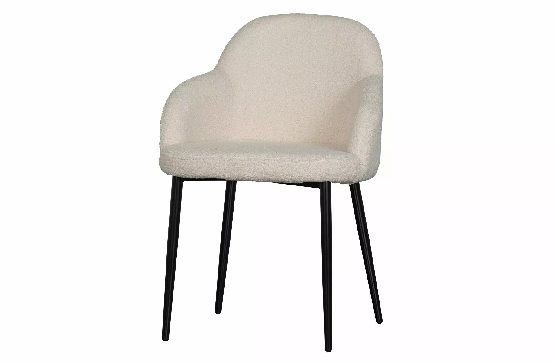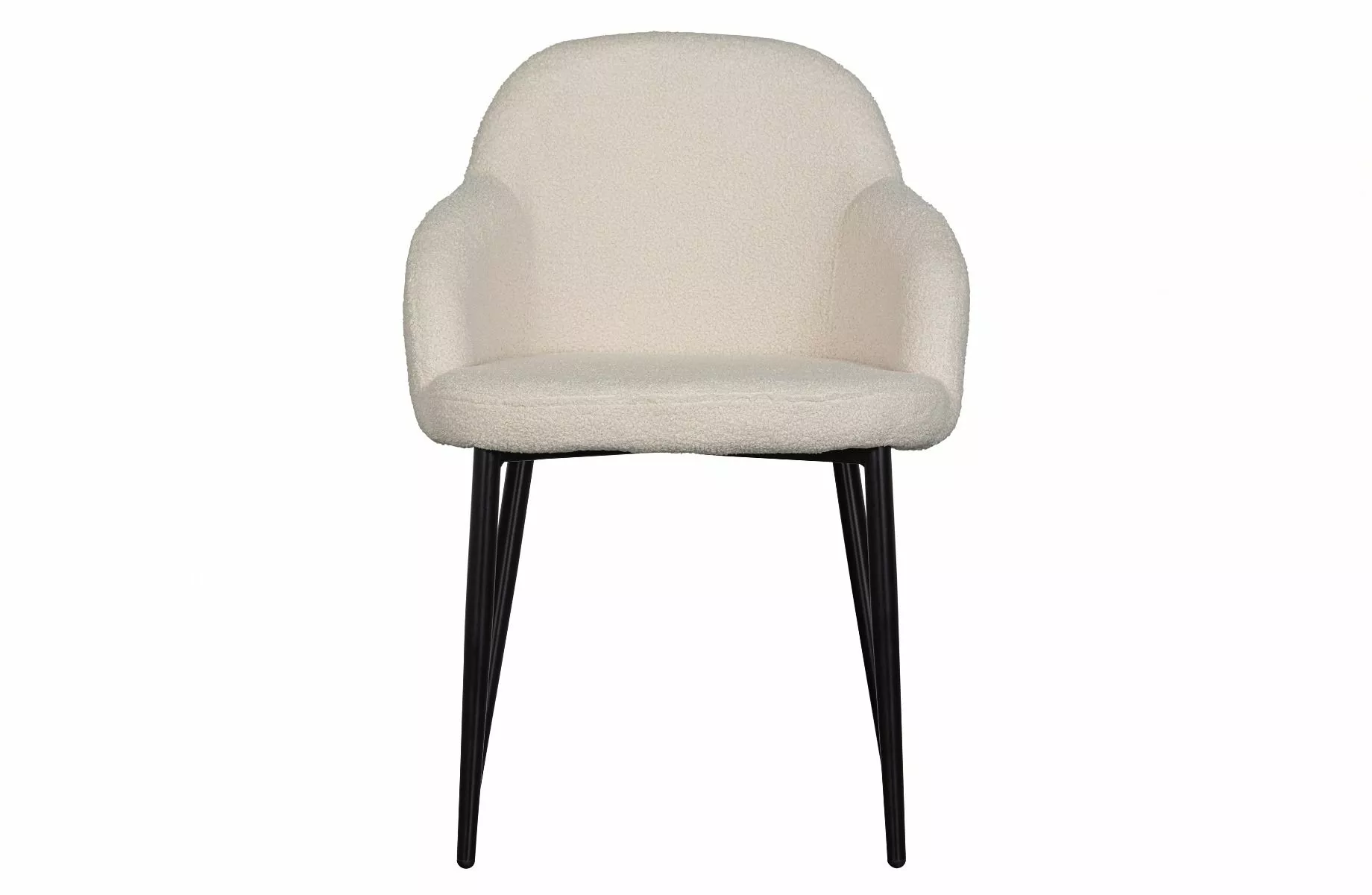 Med Noortje spisestol bringer du et synlig og håndgripelig komfortabelt sete til spisestuen. Noortje spisestuestol er fra WOOOD-kolleksjonen og har et slankt og stilig design. Noortjes sete og armlener er trukket i mykt teddystoff og den sorte basen gir spisestolen et tidløst uttrykk.