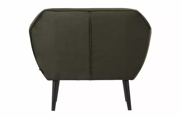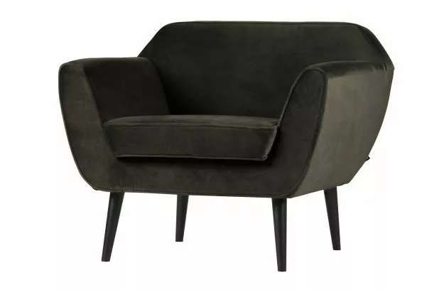 WOOOD Rocco fåtölj är en vacker fåtölj med svartlackade björkben. Stolen är klädd med ett 100% polyester sammet tyg i färgen varmgrön. Det är en fåtölj med ett bekvämt säte.