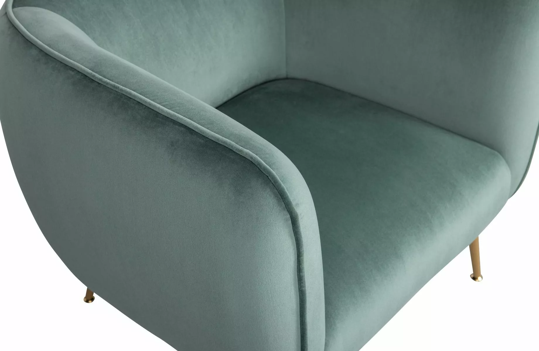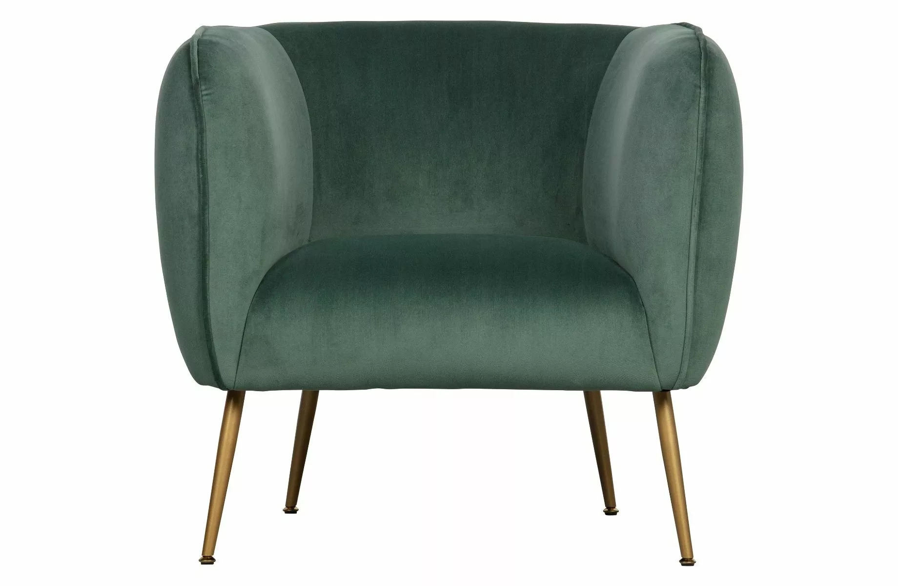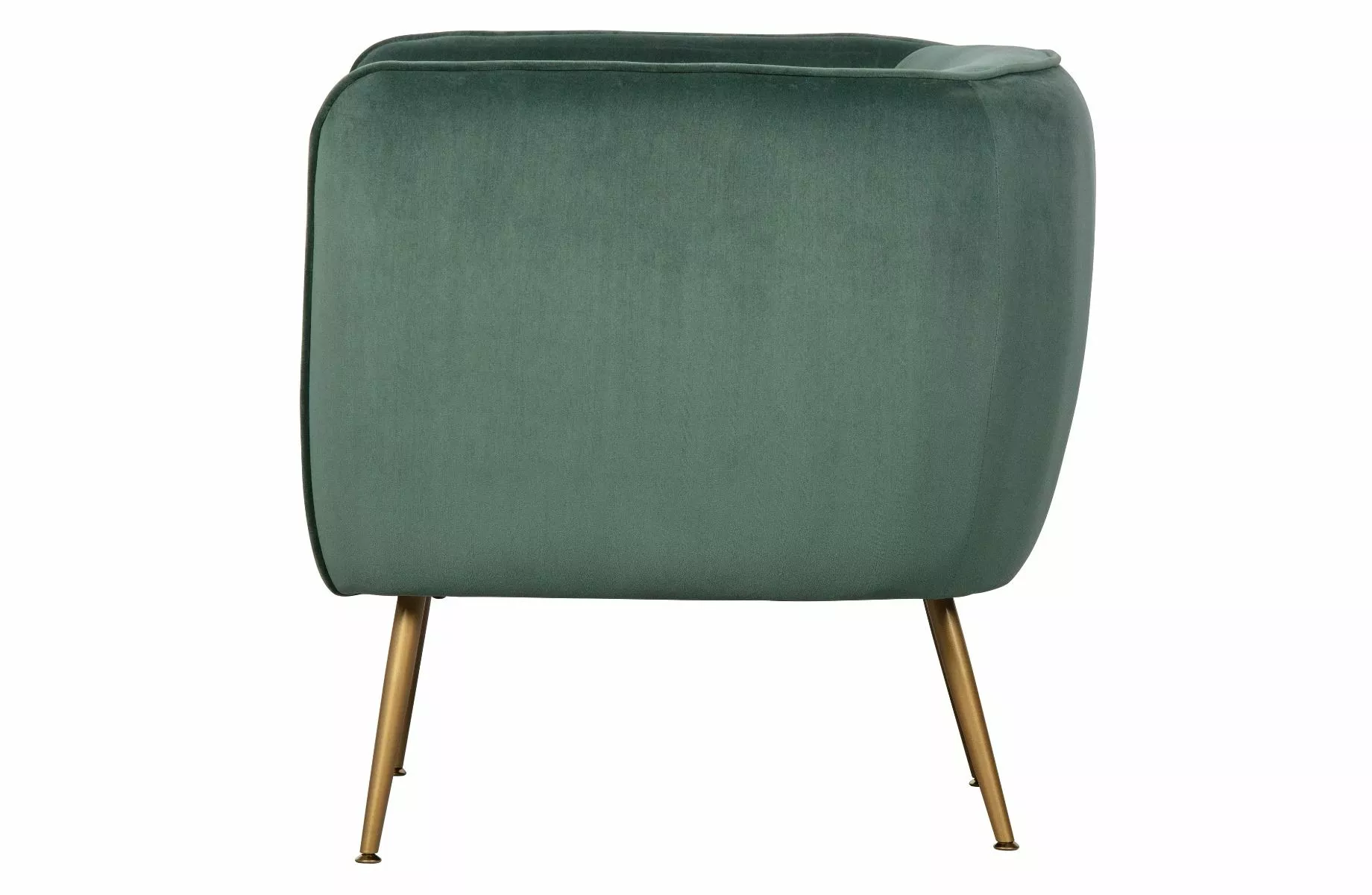 WOOOD Scout lenestol fløyelsgrønn er et vakkert tillegg til interiøret. Denne trendy og stilige lenestolen har sete- og ryggputer laget av PU-skum. Lenestolen er polstret med et mykt fløyel polyesterstoff i fargen grønn. Bena er laget av metall sprayet i gull. Denne kombinasjonen gir lenestolen et elegant utseende.