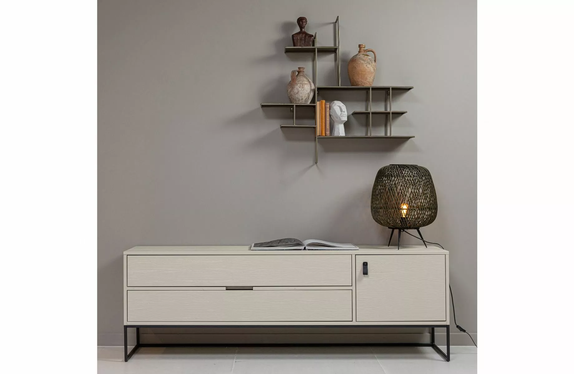 Silas TV-skap er laget av FSC-sertifisert furu og er fra kolleksjonen til det nederlandske merket WOOOD. Silas-serien har et tidsriktig moderne utseende og gir et godt grunnlag for interiøret. Møblene er ferdig i den nye trendfargen: støv. Denne gråaktige sandskyggen gir en luksuriøs varme til interiøret ditt.
