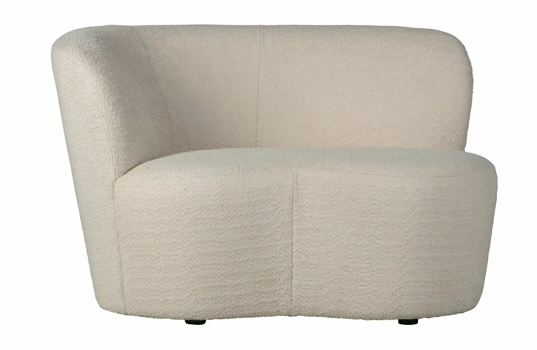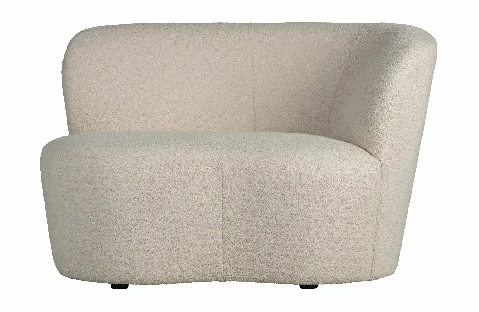Denna lilla stensoffa har en mjuk och vänlig känsla. Stone är från samlingen av det holländska märket WOOOD. Den lilla soffan är klädd i ett krämfärgat bouclétyg (100 % polyester). De mjuka, rundade formerna och det bekväma tyget gör denna soffa till ett bra ställe att koppla av. Tack vare de kompakta måtten kan soffan placeras i nästan vilken interiör som helst. Denna soffa finns som vänster och höger variant.