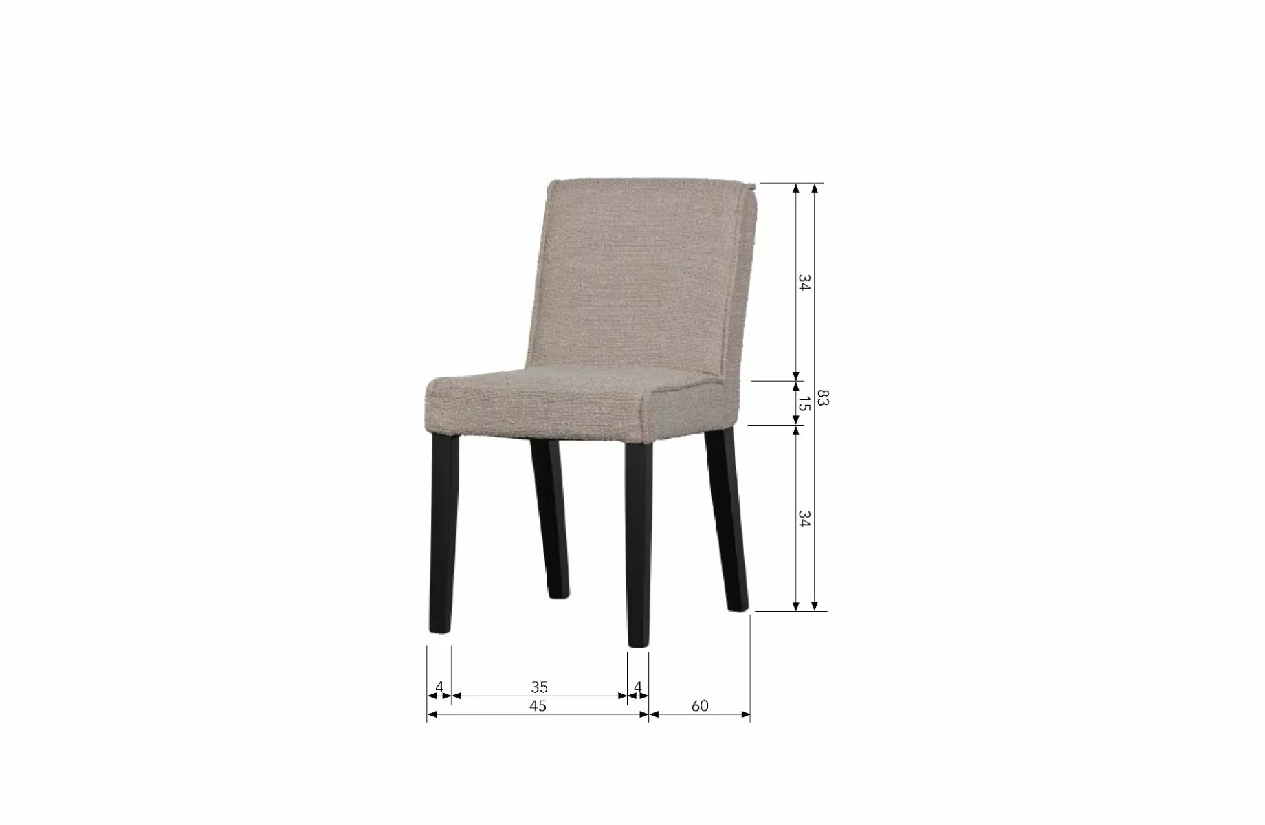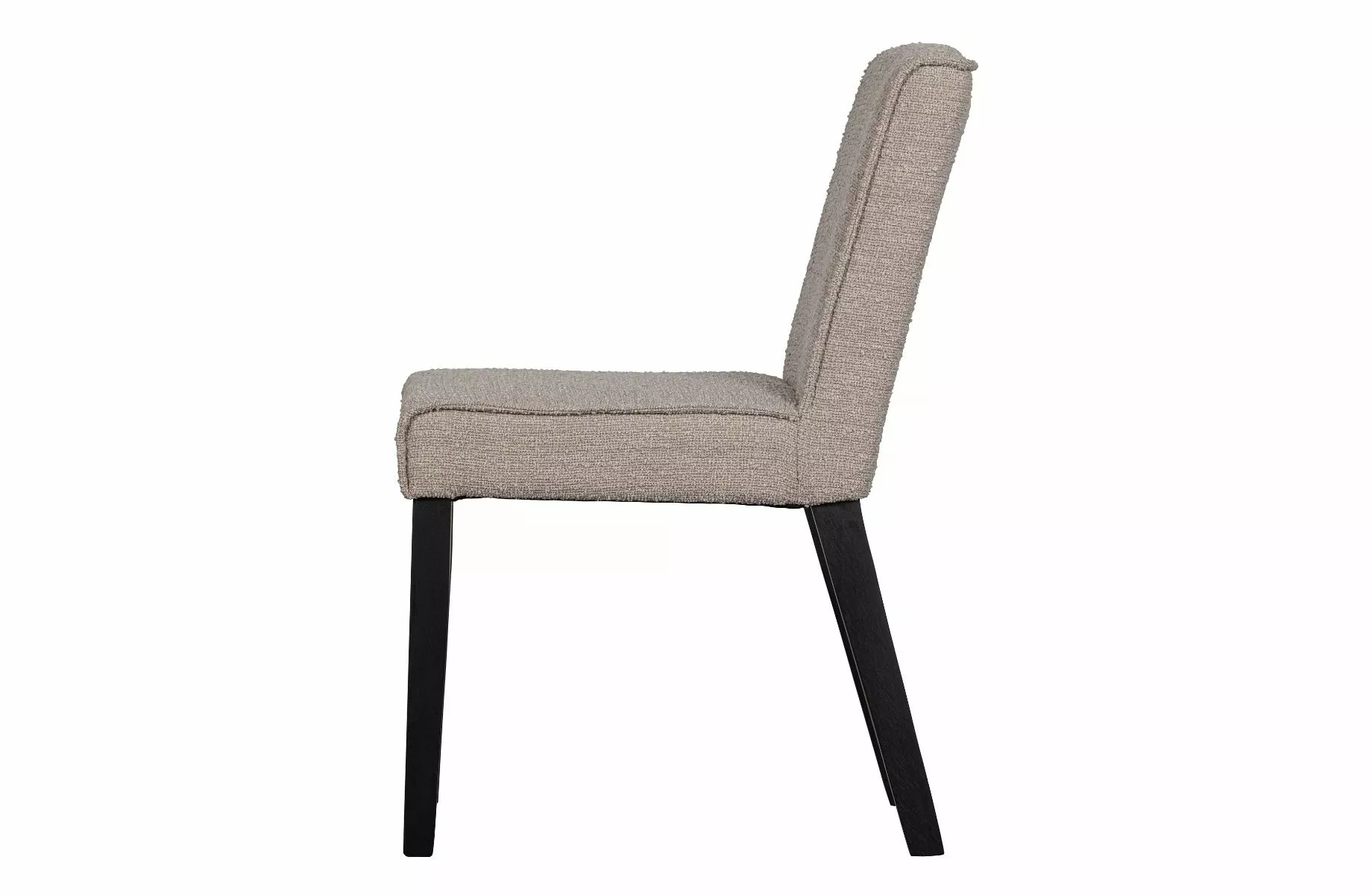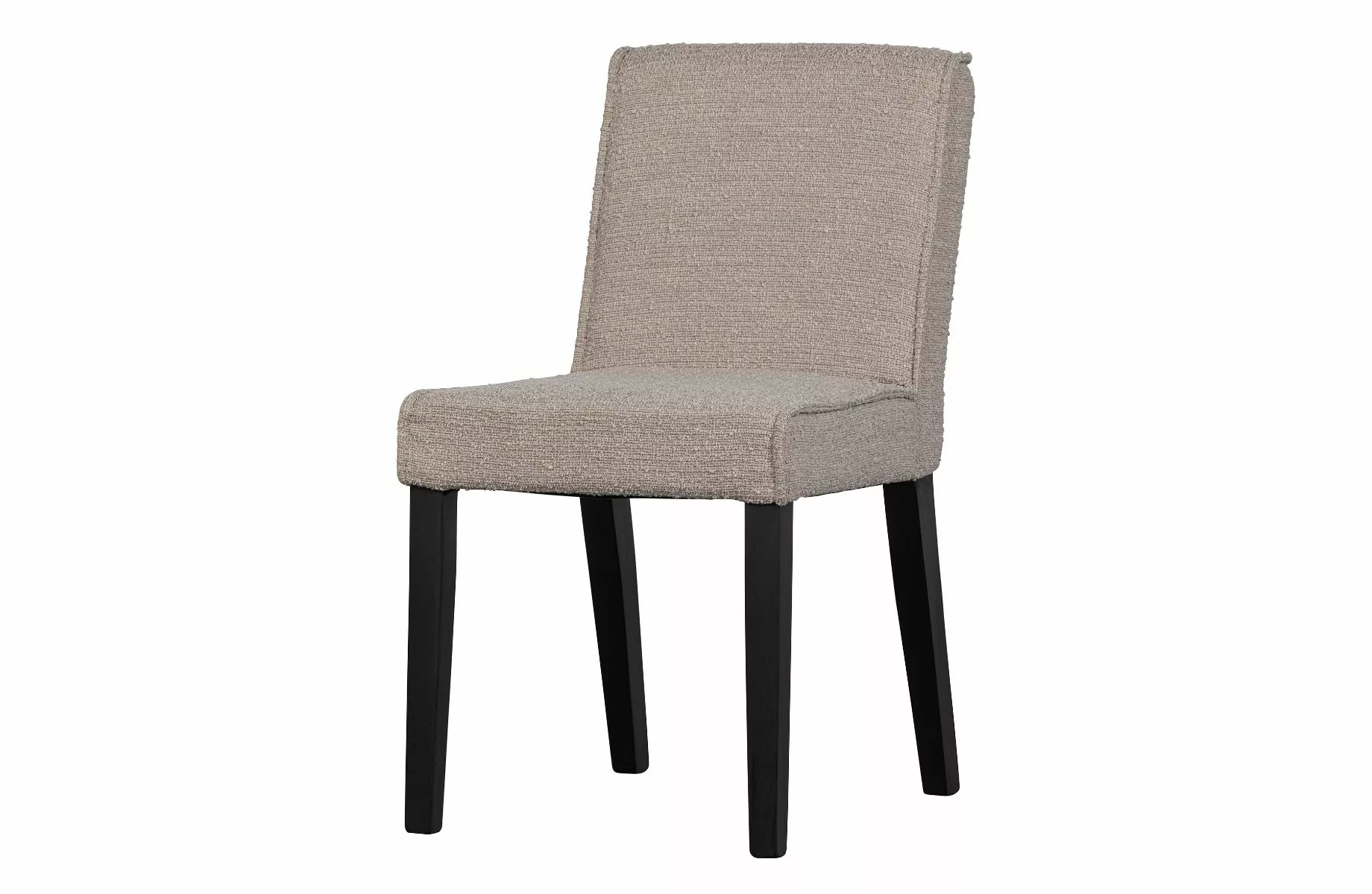 WOOOD spisestuestolen Tessel har et solid og moderne utseende. Spisestolen er trukket i et mykt boucléstoff (95 % polyester / 5 % polyakryl) med en Martindale på 75.000. De svartlakkerte bøkene i kombinasjon med polstringen gjør denne spisestuestolen til et vakkert tillegg til ethvert spisebord.