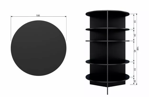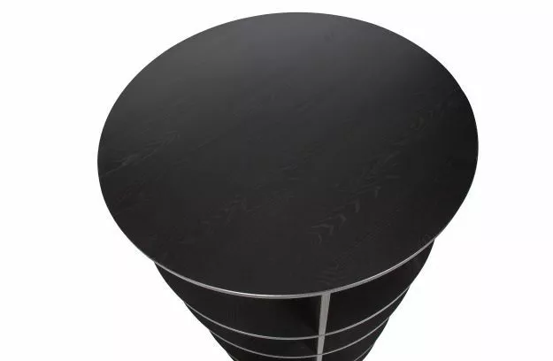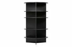 Bokhylla Trian rund ø100 cm är en egen design av det holländska varumärket WOOOD Exclusive är helt gjord av slipat massivt ask (FSC) med fingerskarv som lackeras med en svart färg som kallas blacknight. Skåpet har 3 sidor som alla har 3 storlek fack.