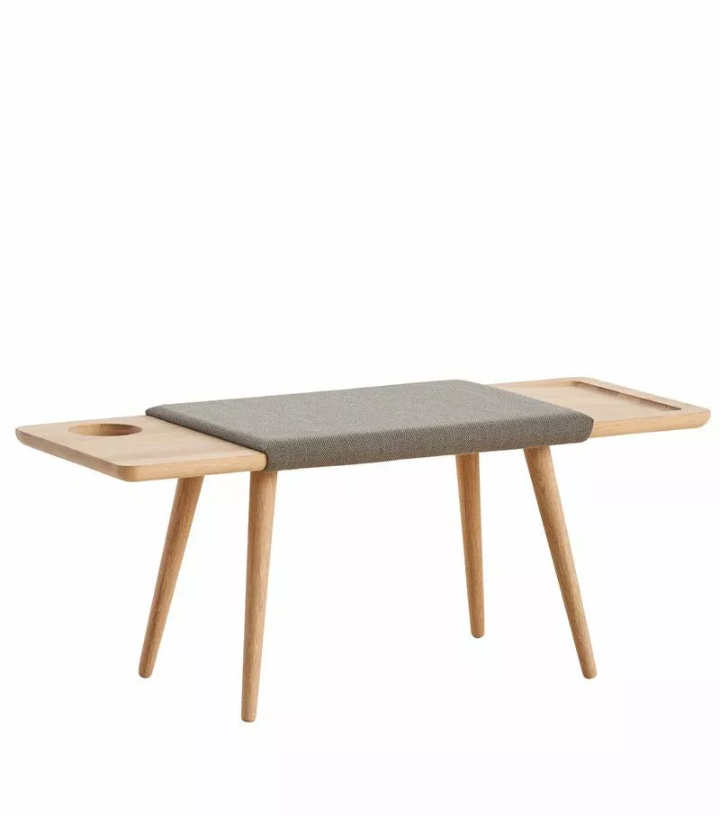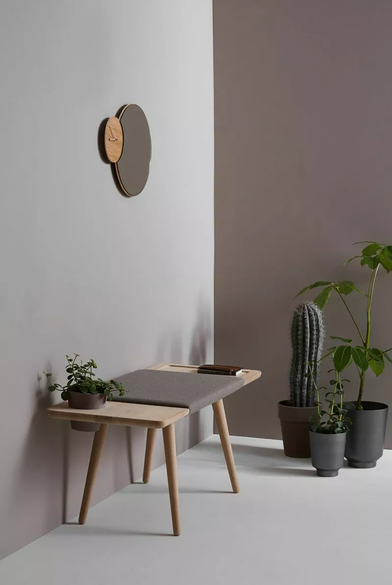 Baenk er en multifunksjonell benk laget av rene minimalistiske linjer. Benken er laget av massiv eik med fokus på de unike venene i tre, som gir hver gjenstand et særegent utseende. Inspirert av de nordiske designtradisjonene, omfavner Baenk mykhet med en moderne tolkning av enkelhet og funksjonalitet. Ved å legge til benken en hylle og et sete, kan den brukes i flere sammenhenger. Det sirkulære hullet på siden kan brukes til en paraply eller plante, noe som gjør det ideelt for gangen eller soverommet. Basert på inspirasjonen fra en gammel pappbroderitråd, er midtstykket polstret for å gi økt komfort. Stoffet er nøye valgt for å utfylle strukturen og nyanser av treet.