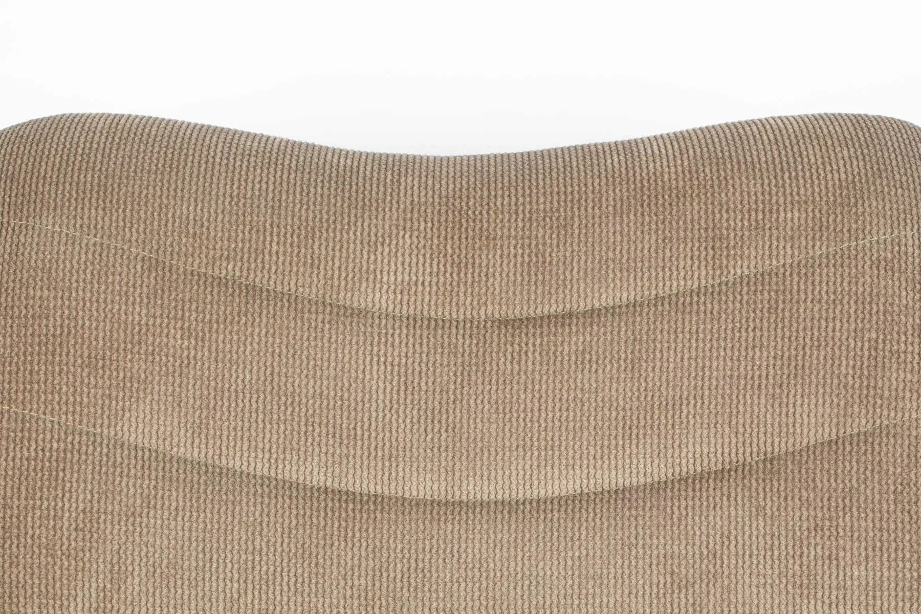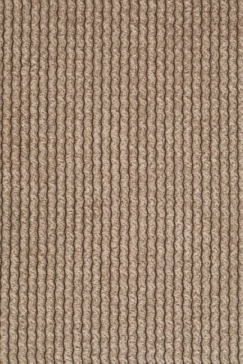 Bubba er trukket i kordfløyelstoff med et lite sikksakkmønster. Det er tydelig å se at resultatet er en veldig komfortabel lenestol.