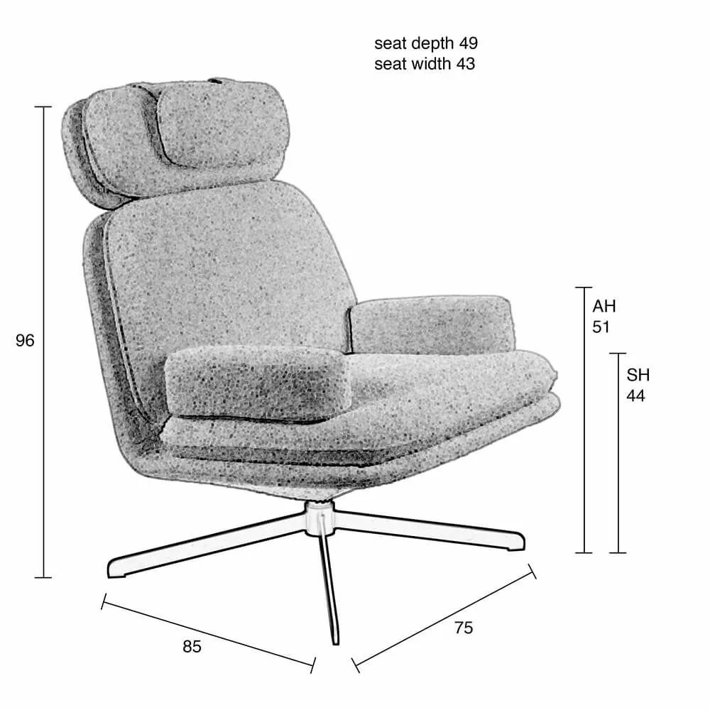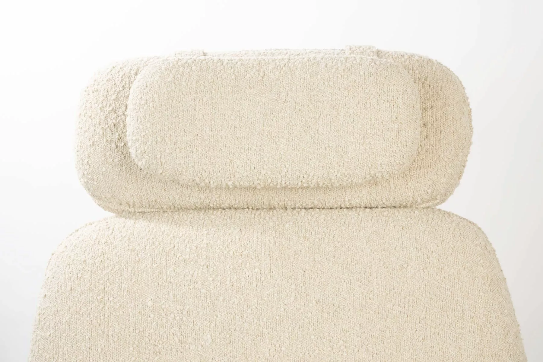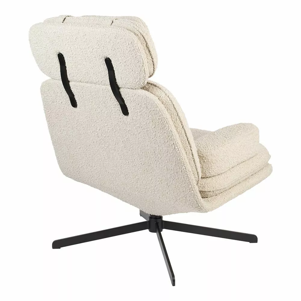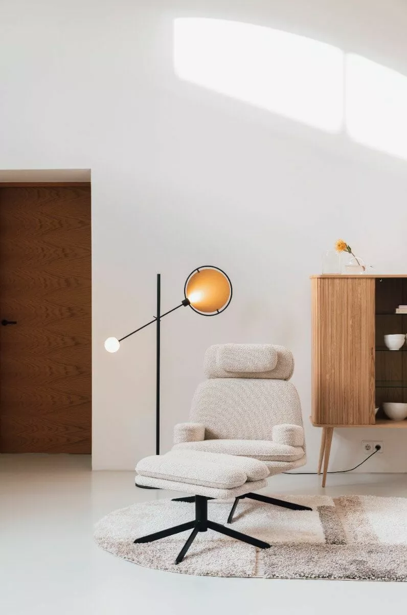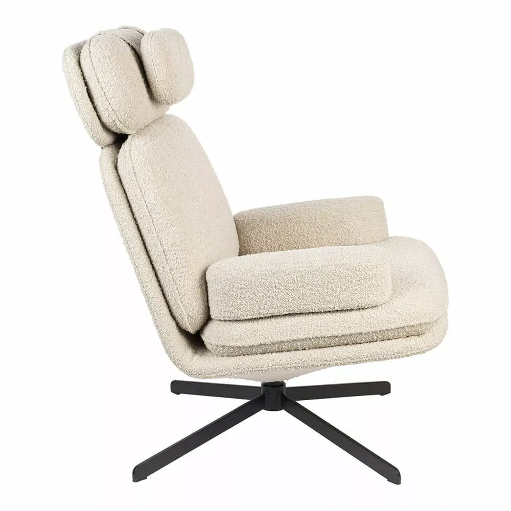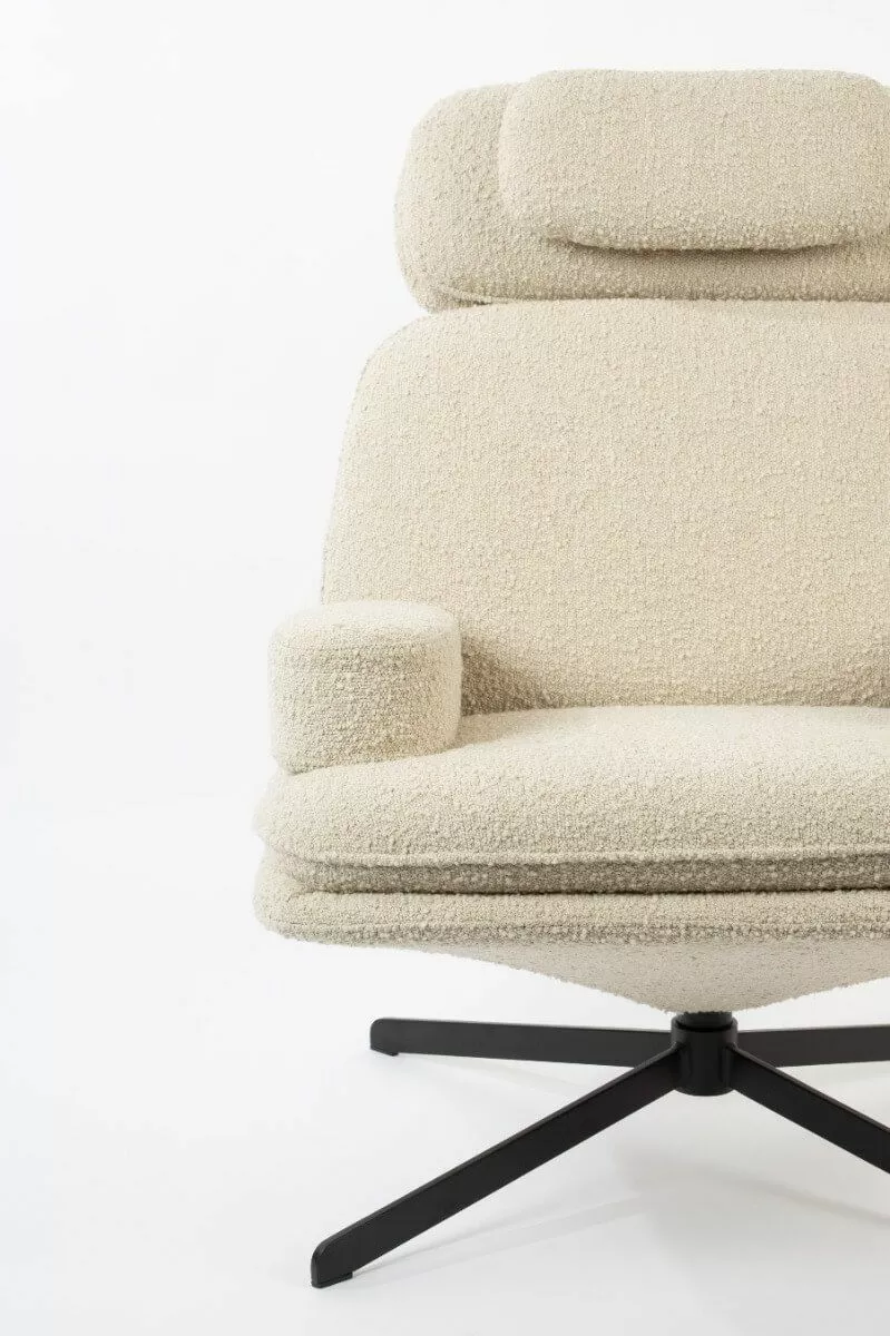 Denne Tyler loungestolen er trukket i bouclé-stoff og har ekstra komfortable puter og armlener. Hodeputen er avtagbar og den svarte slanke basen kan roteres. På grunn av det trenger du ikke å bevege deg lenger når du først har tatt plass. Tyler gir deg muligheten til å drømme deg bort.